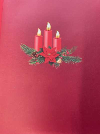 Kerstkaart met Kerststuk en kaarsen