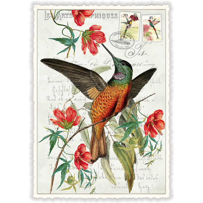 Tags: ansichtkaart, bloemen, edition Tausendschön, flower power, glitter, kaart, kolibri, vogel