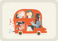 Tags: ansichtkaart, bus, camper, dieren, erop uit, holiday, kaart, lemonbird, lief kaartje, vakantie