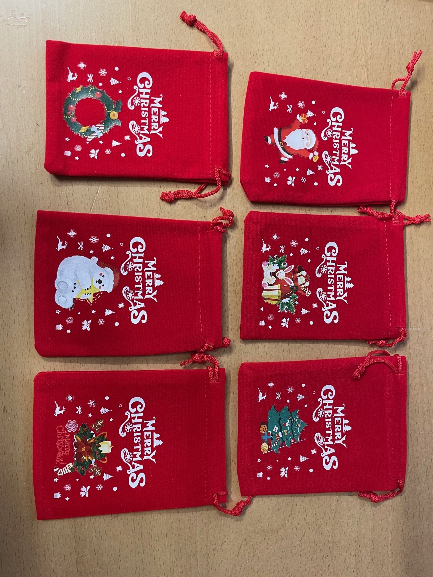 Op het jute zakje staat een kerstafbeelding afgebeeld met de tekst Merry Christmas, wordt assorti geleverd met 4 verschillende afbeeldingen.